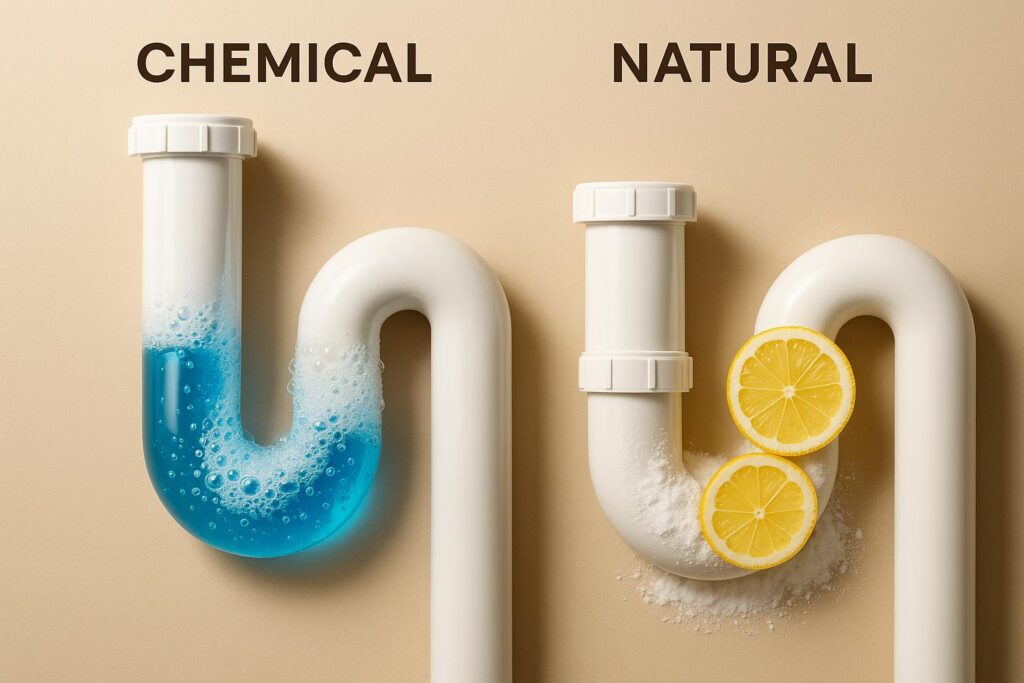 Dealing with a clogged drain? Here’s the bottom line: Chemical cleaners work fast but come with safety and environmental concerns. Natural methods are safer but slower and better for maintenance.